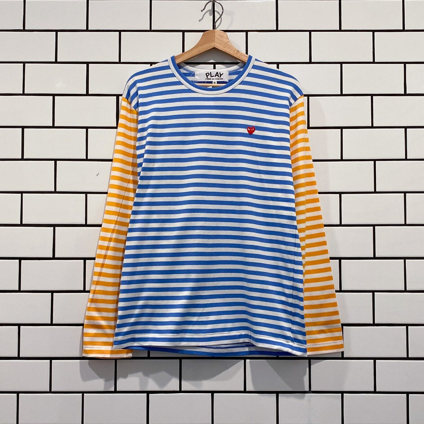 COMME DES GARCONS CDG PLAY BI-COLOUR STRIPE LS TEE BLUE YELLOW AZ-T318-051-1