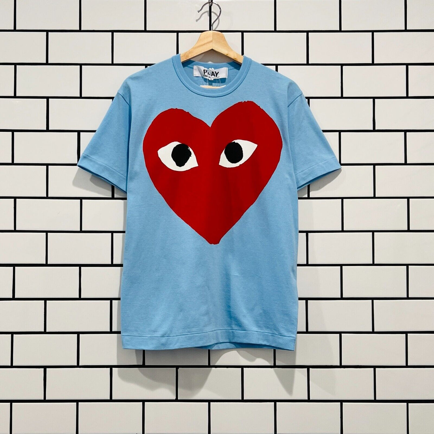 COMME DES GARCONS CDG PLAY BRIGHT HEART LOGO TEE BLUE T274-051-1