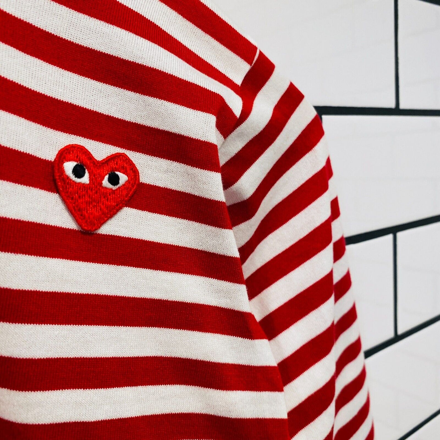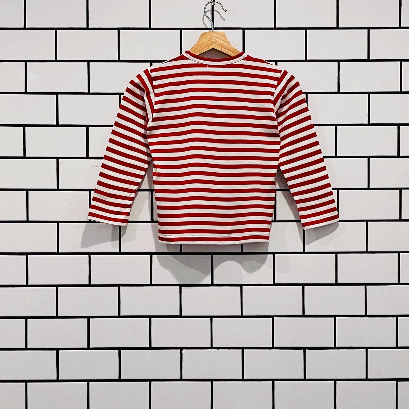 COMME DES GARCONS CDG PLAY KIDS RED HEART STRIPE LS TEE RED AZ-T663-100-4