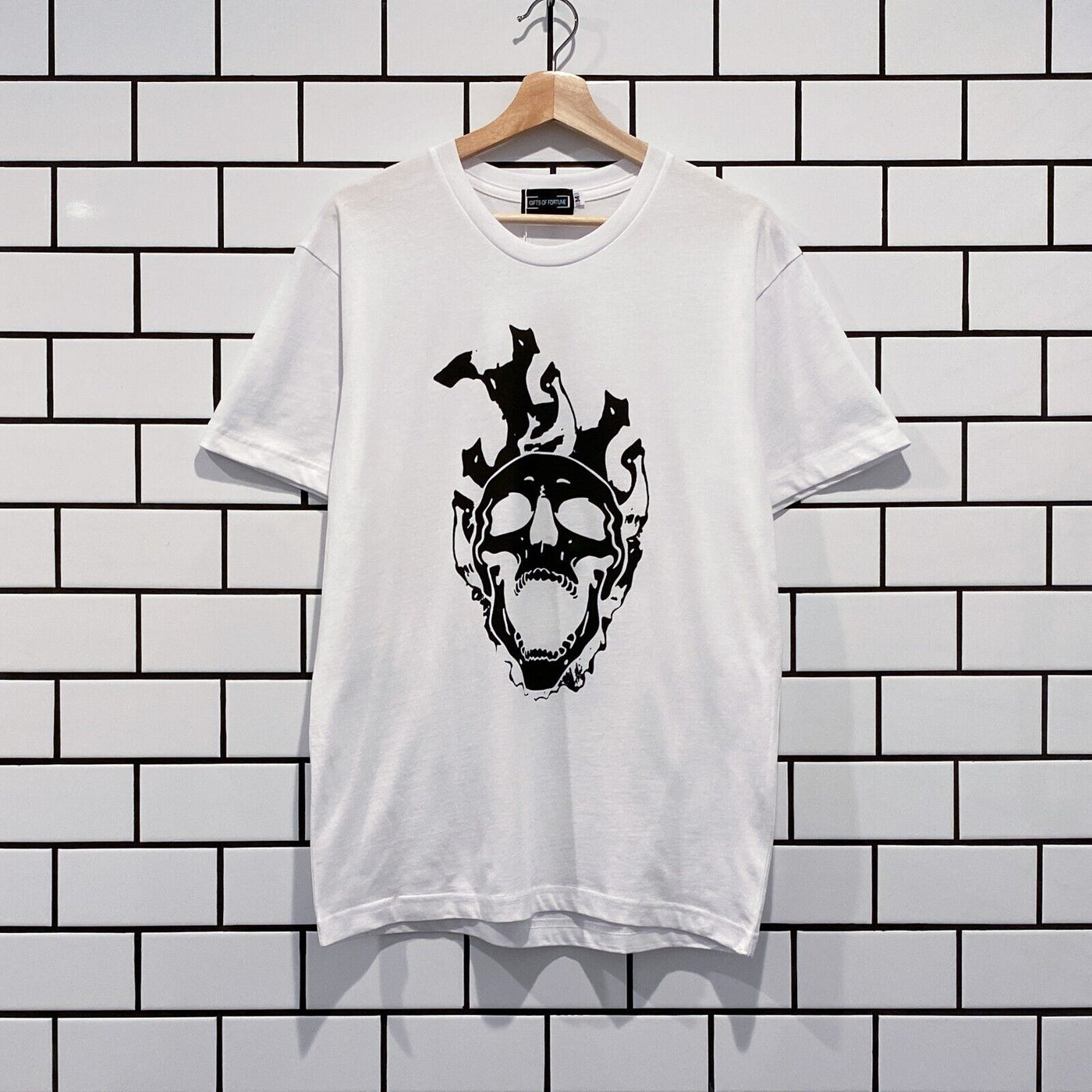 GIFTS OF FORTUNE FLAMMING SKULL T-SHIRT WHITE