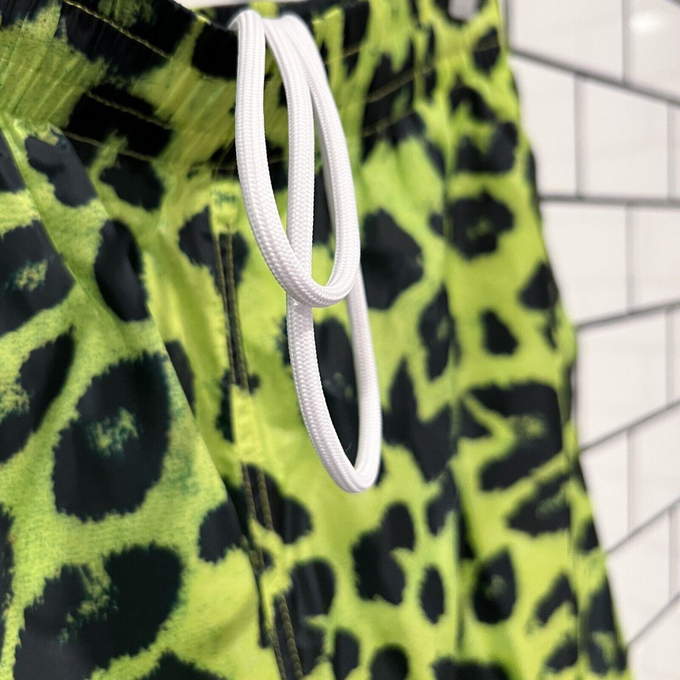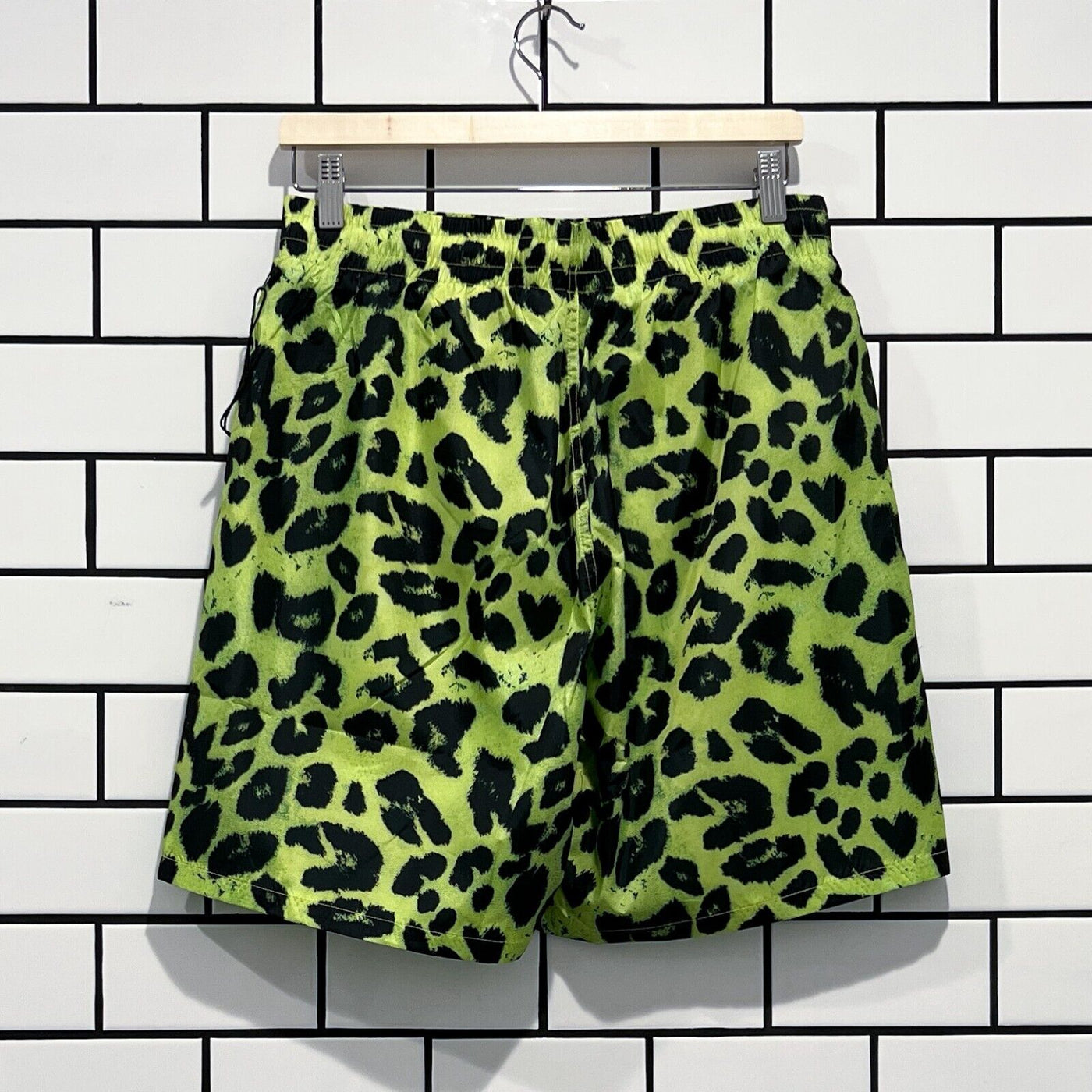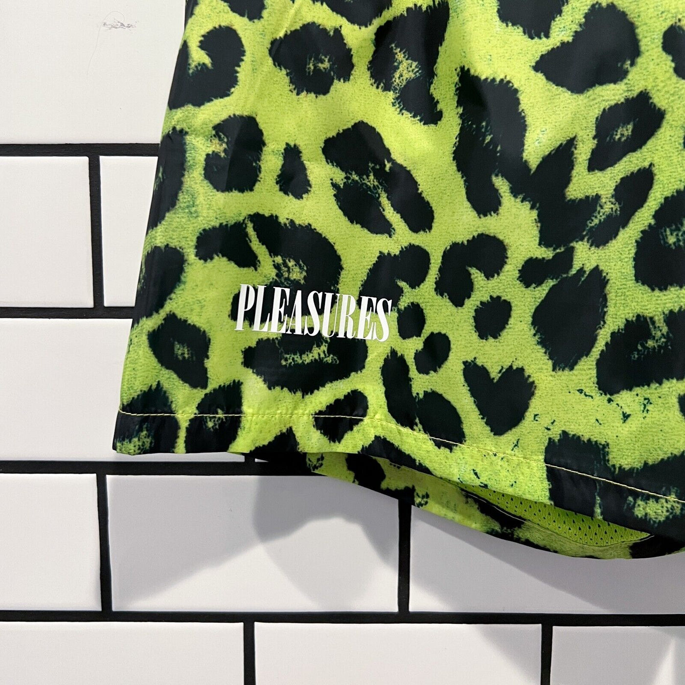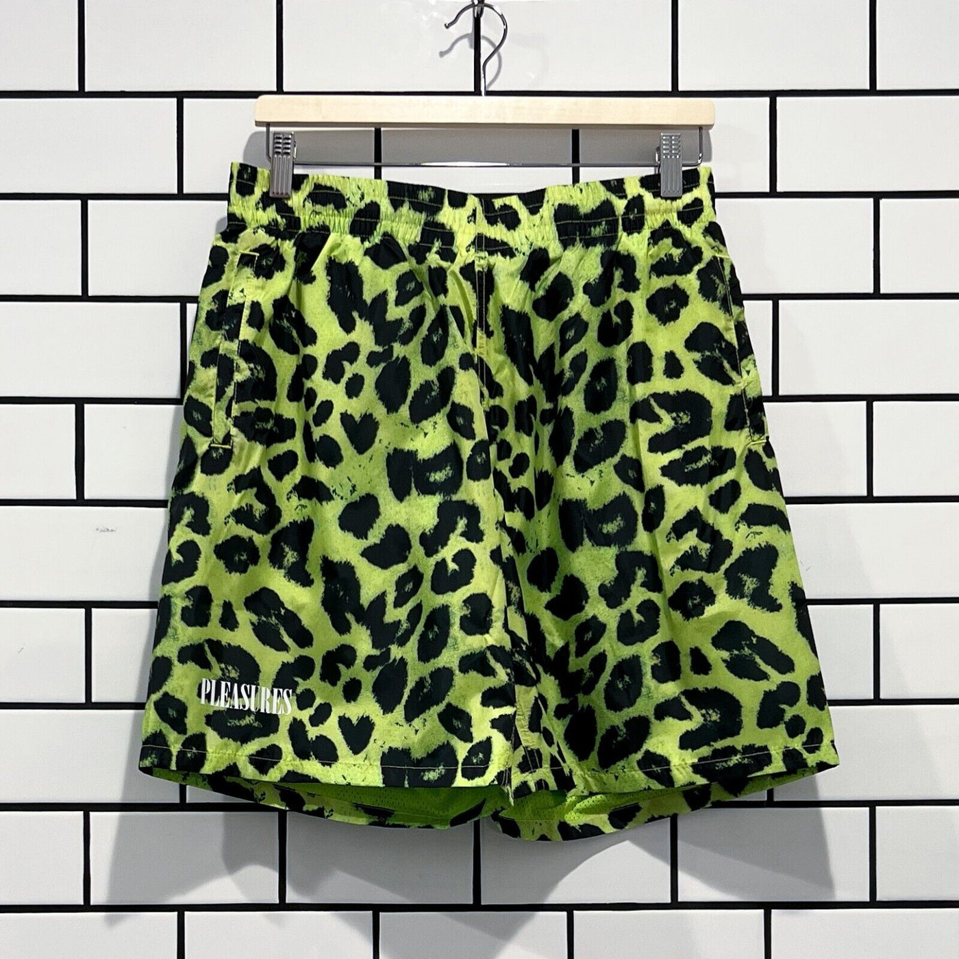 PLEASURES LEOPARD RUNNING SHORTS LIME